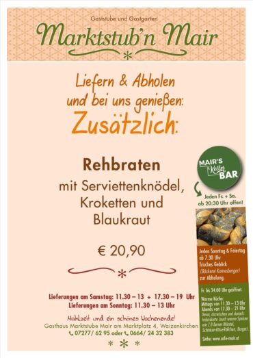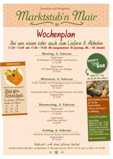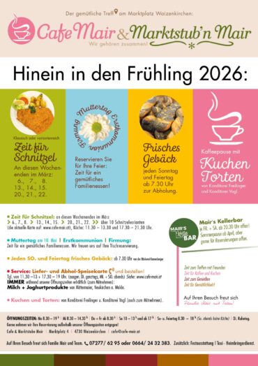 Willkommen im Cafe Mair in Waizenkirchen